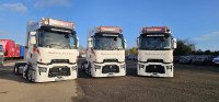 Pictured are the first three of an order of ten new Renault T High Cab 520 BHP 4 x 2 tractors, supplied by Setanta Trucks.